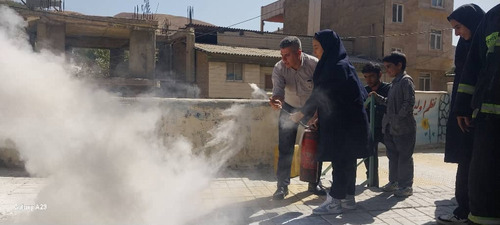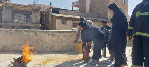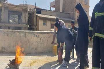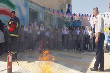 برگزاری آموزش و مانور نحوه اطفاء حریق برای دانش آموزان مدرسه ابتدایی و متوسطه اول توحید
