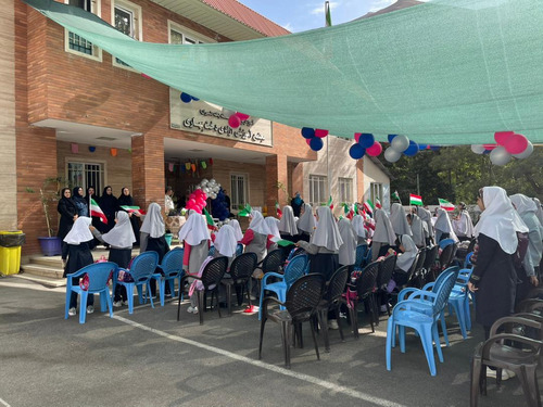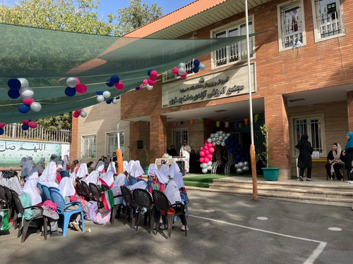 نواختن زنگ شروع سال تحصیلی در مدرسه ابتدایی دخترانه محمد باقر صدر اوشان